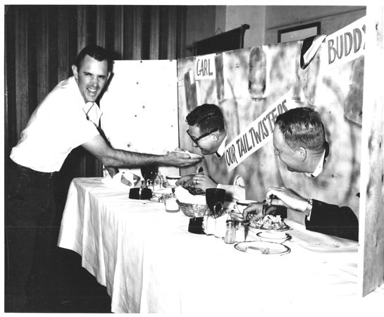 Biff Basham threatens and then puts pie in the face of Lions New Members Carl Sirles and Buddy Hand.