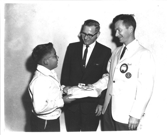 In the photo above, a Carlsbad Lions member Don Stuart congratulates Terry Cammon as the Lions Student of the Month in 1966.